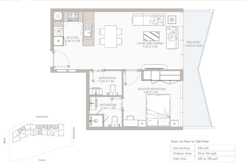 Situated on Yas Island, this modern 1-bedroom apartment offers an ideal living space designed for comfort and convenience. With a total area of 61.1 m2, the apartment features large windows and balconies, allowing for plenty of natural light. The spacious windows maximize sunlight, creating a bright and airy atmosphere throughout the living area.