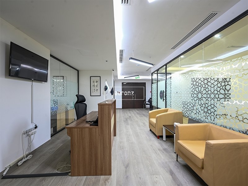 In the Business Bay area of Dubai, this spacious commercial office offers 263.3 m2 of usable space and boasts stunning views from the upper floor. With its modern design and large glass walls, the office allows for plenty of natural light, creating a bright and open atmosphere. The office is fully furnished and equipped with high-quality facilities. The central air conditioning system ensures a comfortable working environment throughout the year. Additionally, the office is supported by 24/7 cleaning services, providing great convenience for businesses.