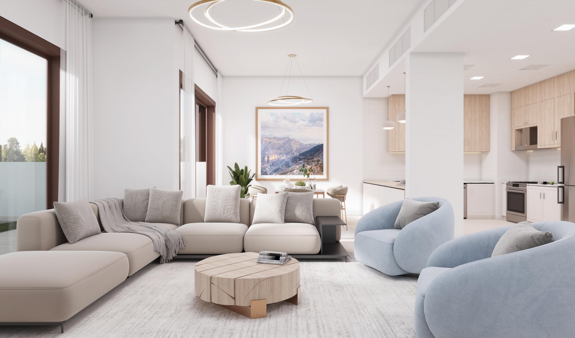 The modern kitchen is equipped with high-quality materials, making cooking a pleasurable experience. The expansive living area is perfect for family gatherings and entertaining guests. Additionally, large windows throughout the home allow natural light to flood in, enhancing the sense of space.