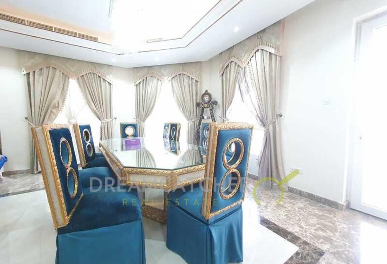 In the prestigious The Villa area of Dubai, this luxurious villa offers elegant living spaces and modern amenities. Built on 630.06 m2, the 7-bedroom home provides a spacious environment where comfort is prioritized in every detail. The modern kitchen, equipped with high-quality appliances, creates the perfect setting for family meals. Additionally, the stylish living room, furnished with a comfortable sofa, chairs, and a table, adds warmth and sophistication to the home.