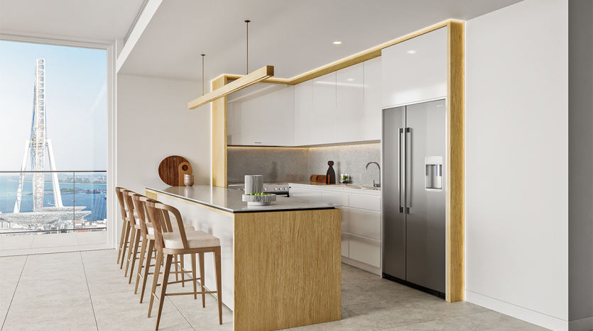 Расположенный на острове Bluewaters, апартамент открывает захватывающий вид на крупнейшее в мире колесо обозрения “Ain Dubai”. Квартира идеально подходит для тех, кто ценит близость к морю, а также удобный доступ к торговым центрам, ресторанам, кафе и другим социальным объектам. Благодаря отличному расположению, к основным достопримечательностям Дубая можно легко добраться.